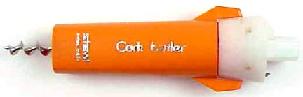 Extracting a cork with the "Cork Butler" was rather simple. You rest the lower part of the the assembly on the bottle neck and twist the top (white part) to screw the worm into the cork. Grab the ears on the lower part and start turning. The cork rises in the barrel. To remove the cork from the worm, just twist the upper part again to thread the worm and cork down. Unscrew the cork from the worm. It also has foil cutter and cap lifter built into the top.