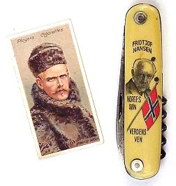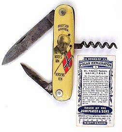 Nansen was honored on a corkscrew knife produced by Carl Schmidt Sohn, Solingen, Germany and a tobacco card issued by John Player & Sons: