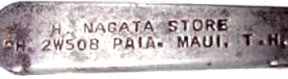 Here is my E-Z Cork Puller which advertises "H. Nagata Store" in Paia, Maui, T.H. (Territory of Hawaii). The store is still there and this opener dates from WWII. We got this at a flea market on Maui in 1999.