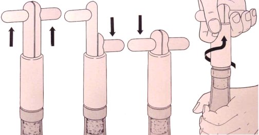 - Grip the two piece handle as well as the upper body of the corkscrew with one hand and pull it gently upwards with a slight turning motion.
