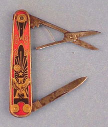A 2 1/2 spread wing eagle knife with scissors without corkscrew. Adolphus own name appears on this one and, perhaps, he gave this one to the ladies.