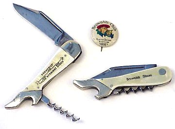 St. Louis, Missouri - Did you know?: Buster Brown Shoes were Brownbilt shoes - the advertising on the corkscrew knives produced by the Seneca Knife Company, Utica, New York? The famous Brown Shoe Company in St. Louis, Missouri used the popular Buster Brown and his dog Tighe in their advertising with the ever popular "I'm Buster Brown, and I live in a shoe. That's my dog, Tige, and he lives there, too. Plunk your magic twanger, Froggy!"