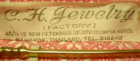 Alf, check out this one: C. H. Jewelry Factory, 45/11-12 New Petchburi Rd. Opp. Olympia Hotel, Tel. 916948. It was this label inside another bar set:
