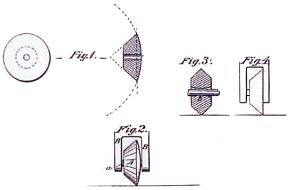 Hill, New Hampshire - The above drawing is the only drawing in Frank R. Woodward's August 24, 1875 United States Patent Number 166,954. His invention was a "Rotary Paper Cutter" and there is no mention of a corkscrew or other tools that the cutter was combined with in production.