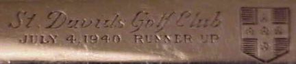 Thank you for the pictures of the corkscrew. I can tell you that it is not a Royal St David's Golf Club prize. However I recognize the crest as that of St David's Golf Club, 845 Radnor Street, Wayne, Pennsylvania 19087. This Club was presented with a St David's Golf Club plate upon the occasion of our Centenary in 1984 with the same crest. One of their members is also an International Member here, Mr. Robert Tiffany, 1141 Lafayette Road, Wayne, Pennsylvania 19087 (jetret@comcast.net) he may well be able to help you with the names of the winners.
