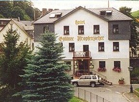 Hotel "Goldener Pfropfenzieher" in Oberwesel am Mittelrhein. Restaurant mit Biergarten 30 DZ mit 75 Betten
