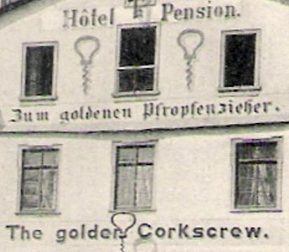 This postcard from Oberwesel a. Rh., Germany is dated July 10, 1911. The Hotel is named Zum goldenen Pfropfenzieher (The golden Corkscrew).