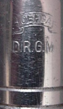We have one like it in a leather pouch. Ours is marked OEHBA but does not have the D.R.G.M. mark on it.