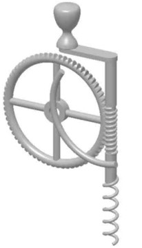 Attached is a sketch of what I can remember of the format of the unknown corkscrew. It packed flat as it was in a presentation box about 8" square and quite shallow. It must be taken into account that the representation is what I think I remember from having seen and admired the corkscrew about 3 years ago! As it stands there it certainly won't work. If I added more bits to make it work it may not turn out the way it was (if you can work that out!).