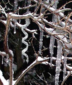 Vancouver, British Columbia, Canada - With the ice storms of the past week sweeping the United States and Canada, icicles sprouted from trees and building eaves. A very special type of icicle could be found in the Kitsilano residential district of Vancouver. Wayne Meadows grew a "Helixcle" in the back yard of his Corkscrew Inn.