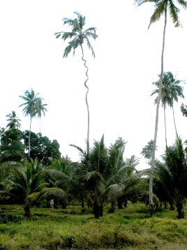 Daniel Kissling of Switzerland submitted his photo (left) of a corkscrew palm taken in Zanzibar. His photo was taken with a person standing not so far from the tree to give an idea of scale (the individual is shown in the photo at lower left). Two additional views of the corkscrew palm are at center and right.
