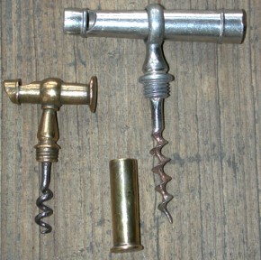 He further describes the optional corkscrew with "A corkscrew is permanently secured to the inner end of the bulb; but if the sportsman is one of the very few who never thirst in the field, nor become sick enough to require the carrying of a flask of tonic or medicine, it may be omitted."