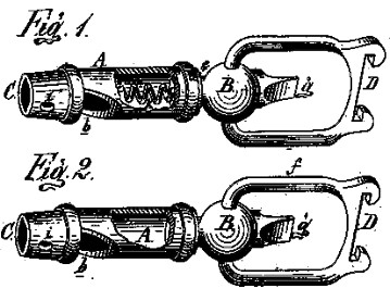 Left: A folding double helix marked S PATT and with the bell trademark of Brookes and Crookes, Sheffield. The double helix is James Wilson's British Patent 898 of March 3, 1877.