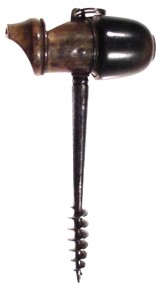 Right: Wood handle direct pull corkscrew with archimedean worm marked J. J.