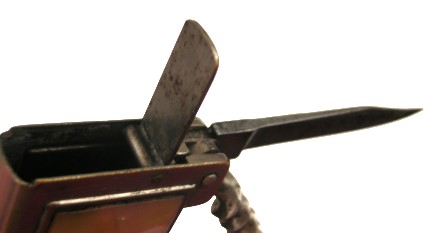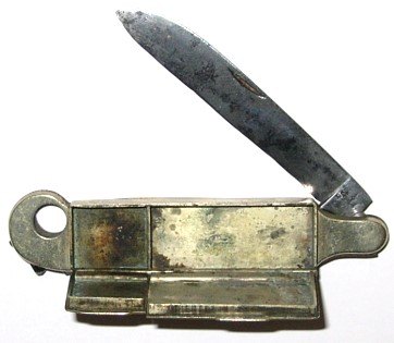 U. S. Patent No. 672,456 issued April 23, 1901 to Henry Paul and Frank Hilbig for a Match Box. They describe their box as having a receptacle with a series of compartments which can contain a corkscrew, matches, or toothpicks and a knife blade / cigar clipper.