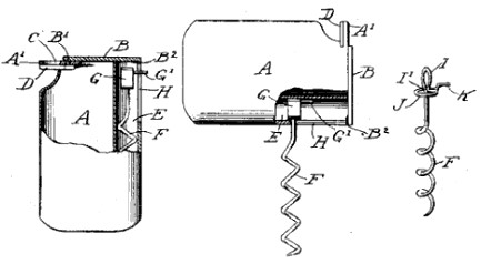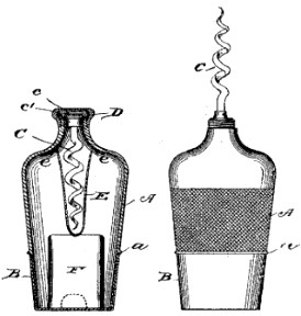 Proctor Dean and George Orr patented a Combined Corkscrew, Match-Holder, &c on August 1, 1893 (U. S. No. 502,351). "A match holder, preferably made in close imitation of a pocket flask such as used for carrying liquors, and having adapted and applied thereto a cork screw of novel construction and also preferably constructed to provide a stamp holder."