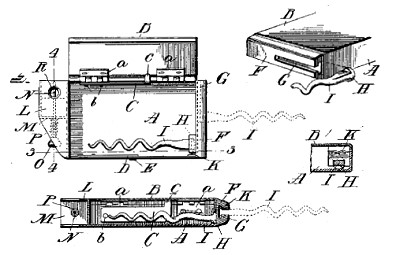 U. S. Patent No. 762,180 of June 7, 1904 issued to Bartholomew Brooks of Philadelphia, Pennsylvania for a Combined Match-Box, Cigar-Cutter and Corkscrew. Brooks claims "... a corkscrew adapted to normally fit within the tubular portion, said enlargement adapted to fit tightly within the tubular portion when the corkscrew is at right angles to the box with the shank extending through the slot, and a pin extending outward at right angles to the corkscrew adapted to protrude through the slot when the corkscrew is in its normal or inoperative position."