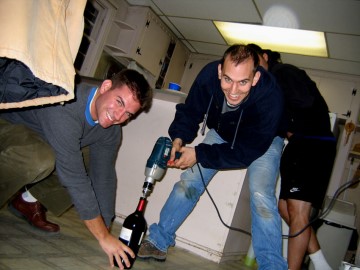 We also found these two guys who captioned their 2005 photo "Lacking the proper corkscrew, Gino and Jarrod attempt to open a bottle of wine with a power drill."