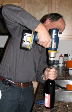 Do people actually use drills for uncorking wine? We found this photo on the Internet. It is a picture of someone named Joshua attempting to open a bottle of wine for New Year's 2007. Good luck Joshua!