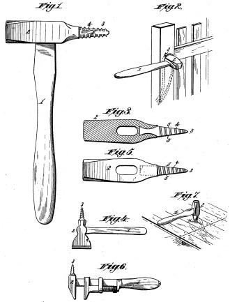 Although the main purpose of Stewart's patent was as a hitching device for horses, he combined it with a hammer, wrench, or hatchet and a scraper or pick for removing stones from horse feet.