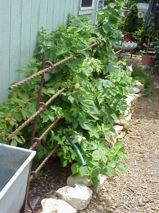 Carroll Johnson purchased several of the Cavalry fence posts and put them to good use. He writes "I first encountered these posts on eBay from a dealer in South Dakota. I bought one. When we moved from Massachusetts to Kansas, I discovered another antique dealer carrying some in his 'yard art' junk area. We bought some more and now use them in the garden because they are able to support plants with dense growth and obviously, once in the ground, are stable. Once other gardeners learned of their historical importance in the area, they began to purchase them and use them in their gardens."