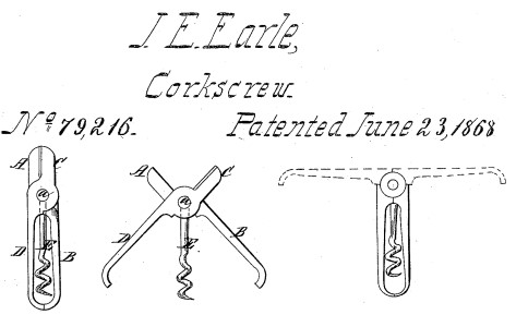 Coincidentally, John E. Earle, the patent attorney for Austin, patented a corkscrew on June 23 1868: