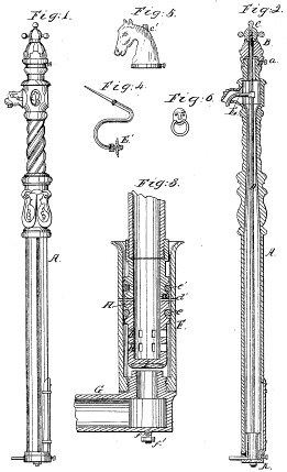 U. S. Patent Number 83,899 issued November 10, 1869 to James Allison of Cincinnati, Ohio for a "Hydrant". Allison wrote "...when it is desired to convert the post into a hitching-post, the horse-head cap, fig. 5, may be substituted for the cap, B, and a nut, C, may be applied for working the valve..."