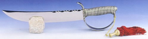 Barrels and Bottles wine & champagne merchants of England gives these details for the Champagne Sword: "The French Cavalry would ride into battle with a bottle of Champagne to be enjoyed before the battle as a form of Dutch courage. The Cavalryman would draw his sword and with a deft flick of the wrist cut the neck of the bottle clean open. The cork, cage and bottle neck all come away as one piece and the exploding pressure of the Champagne forces away any shards of glass. A truly amazing sight to see to this day at Champagne houses as the cork flies a huge distance and the spray is very impressive. This does take some practice and safety should be the first concern - whilst not razor sharp these swords can still remove finger tips and more! This Champagne Sabre (use of which is known as Sabrage) has its own stone display stand."