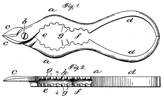 In the February 9, 2004 issue we examined the cork grip patents of Joseph Amigone as well as the variations in the tools produced. In the March 25, 2007 issue we looked at scissor designs with corkscrews. Some of these had cork grips. Today's issue offers a look at a few of the other cork gripper designs.