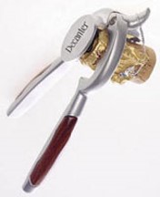 The "Decanter" is also offered as the "Champ-eazy" with advertising "Whisks off cork, wire and foil together in one movement! The intelligent tool that puts the theatre back into champagne opening, without the drama. Must have for the full-on Sommelier."