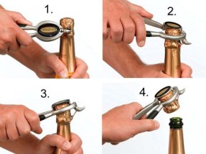 Want to get the Champagne cork out clean and quick? Instead of grips just whack it off with this: