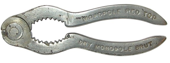 A gripper / wire cutter advertising "Monopole Red Top, Dry Monopole Brut" on one side and "Alex. D. Shaw & Co., General Agents" on the other. Shaw was established in 1881 and National Distillers acquired a 60% stake in the importing firm in 1933.