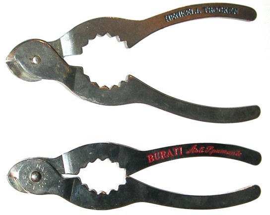 Two advertising grips with wire cutters. The top one advertises "Henkell Trocken". The bottom one advertises "Buratt Asti Spumante" and is marked FARM ITALY.