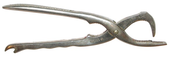 From Franmara: "Attractively designed silver plated tool gives a positive grip for champagne cork removal."