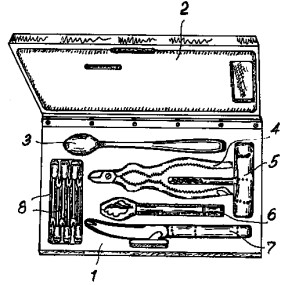 Wüsthof also patented his bar tool as part of a bar tool set (Hausbarkassette). This is German Patent No. 1,768,877 issued earlier in the year on June 19.