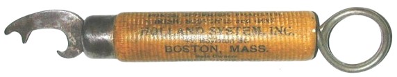 The extractor blade on the All-Ways performs three functions - it lifts crown caps, punctures the cap so that it cannot be reused (the intermediate point), and serves as a hook (the tip) for removing a bottle seal that has a loop in it (often termed a "patent" stopper). Baseler's 1901 patent, shown in Figure 7, was for a cap puncturing function and was assigned to the Augustus W. Stephens Mfg. Company of Cambridgeport, Massachusetts who manufactured the All-Ways tool.