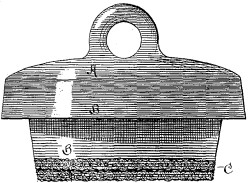 William Painter had many inventions related to bottle stoppers. His August 11, 1885 patent (#324,040) had a loop in it to enable it to be lifted out. There were many earlier patents for corks or stoppers containing some form of loop for pulling them, some appearing as early as 1868. Fred O'Leary's book contains many of them in his section on Related Patents at the back of the book. Painter's August, 1885 stopper is shown in Figure 2.