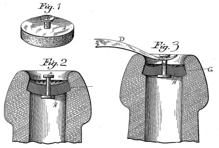 The All-Ways advertisement in Figure 6 also shows it being used to lift aluminum stoppers. Although the drawing is not detailed enough to identify the stopper type, it may have been referring to one of Painter's many stoppers or seals such as that shown in Figure 4 or his October 21, 1890 patent (# 438,709) shown in Figure 9. In the latter case, the edge of the blade could be laid under the lip of the stud in the middle of the stopper, which could then be lifted.