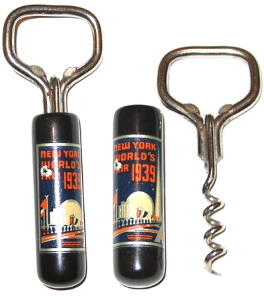 Speaking of "Flash" corkscrews. Here's another type. This one has a plastic sheath with an applied label from the 1939 New York World's Fair. For more New York World's Fair corkscrews, see the May 28, 2006 issue.