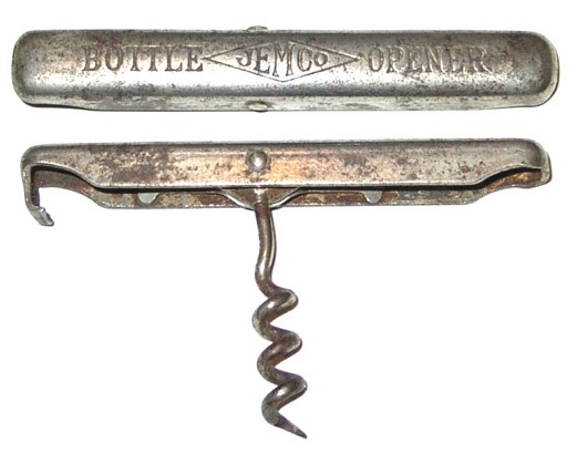 U. S. Patent 1,701,950 was granted to William C. Hiering of Newark, New Jersey on February 12, 1929 for his "Pocket Corkscrew." The patent was assigned to the J. E. Mergott Co. of Newark that will be manufacturing it. Mergott also makes the JEM Jr. 120 Girl Scout metal box camera, matchbook holders, brass advertising calendars, advertising mirrors, and other advertising novelties.