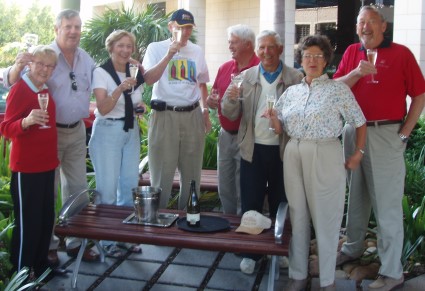 Photo below - Drinking Champagne at 8am on a Saturday morning in 2006 with fellow corkscrew friends in Sydney, Australia, just prior to a day of winery touring in the Hunter Valley, north of Sydney - the day only got better (Paul is fourth from left in the photo).