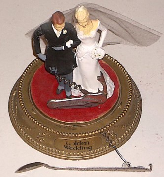 From reader Camille Danziger: "I enjoyed The Wedding Planner issue of February 24. I am sending photographs of a bride and groom from my collection. My corkscrew addicted husband Herb had corkscrews advertising Golden Wedding.