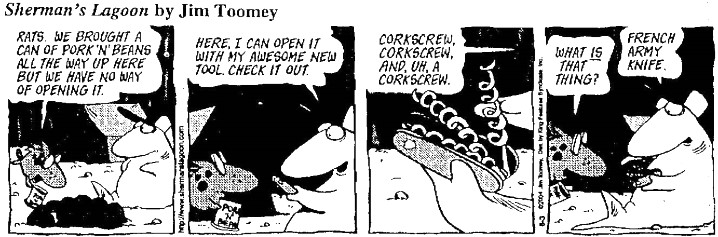 This week we take a look at knives with corkscrews appearing in comics from 1921 to 2007.