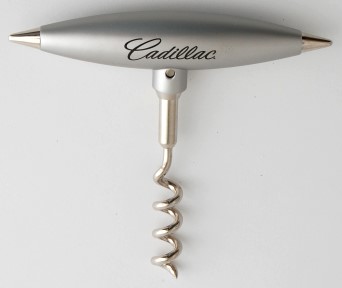 This double lever corkscrew features the emblem used on Cadillac automobiles from 1957 through 1960.