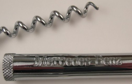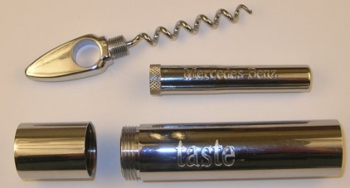 The Mercedes picnic corkscrew is enclosed in a cylinder which is simply marked TASTE.