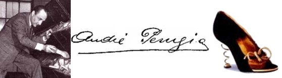 Numerous news reports in December, 1953 featured the ideal gift for Christmas --- the corkscrew heel from shoe designer Andre Perugia (1893-1977). The press release read "Spring in your step - A spiraling 'corkscrew' heel made of gilded metal with matching strips across the instep lends a futuristic air to Andre Perugia's latest pump. The shoe is included in a custom collection of metal-shanked footwear designed for a swank New York City shop." Perugia designed the shoe in 1952 in Paris and when introduced in New York it became a success.