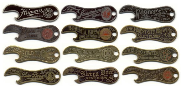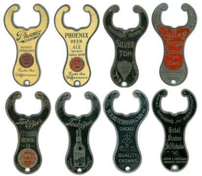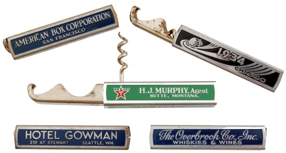 Openers from the collection of John Stanley based on the 1916 patent. 2 1/2" high. (John Stanley).