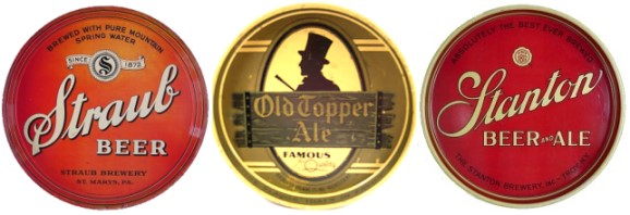 Three of the many beer trays produced by Electro Chemical Engraving