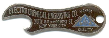 A Century of Progress was the name of a World's Fair held in Chicago, Illinois from 1933 to 1934. Electro Chemical Engraving souvenir bottle openers from each year show the symbol of the fair. (From the collection of Art Johnson).