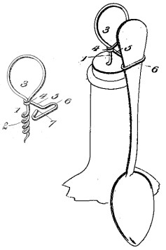 A. M. Irby, Vernon Hill, Va., is placing on the market the Corkscrew and Spoon Holder illustrated. This little device is made of copper wire formed to shape. The object is to always have the spoon at hand when the contents of a bottle are to be used. The corkscrew, of course, is to be inserted in the cork and left until the bottle is emptied.